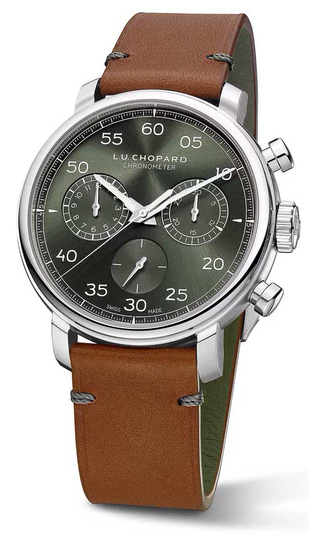 Cuando se observa esta novedad firmada por Chopard y presentada en Watches & Wonders 2023, uno no se da cuenta realmente del trabajo realizado en este objeto. Bajo su aspecto clásico, pero fundamentalmente elegante, se esconde una multitud de complicaciones, como el flyback —que permite el lanzamiento instantáneo de un nuevo cronometraje cuando el cronógrafo ya está en marcha— y detalles sutiles. Como la magnífica esfera de latón verde con acabado satinado efecto rayos de sol.