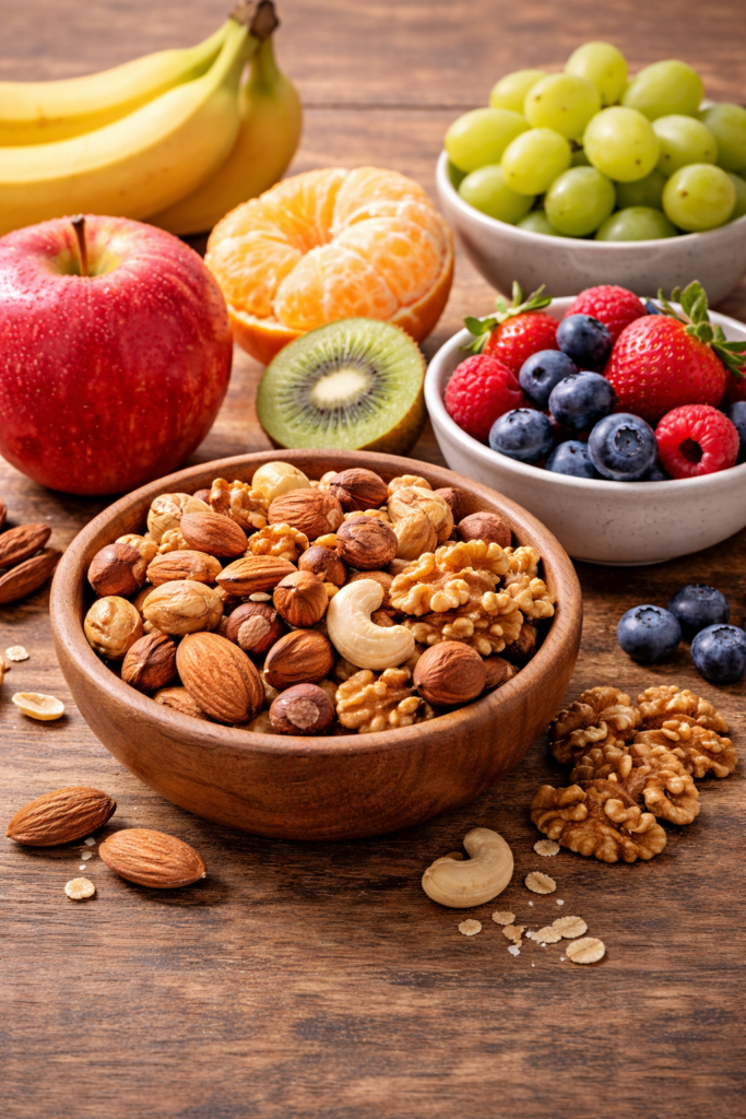 - Grasas saludables: aceite de oliva, frutos secos
