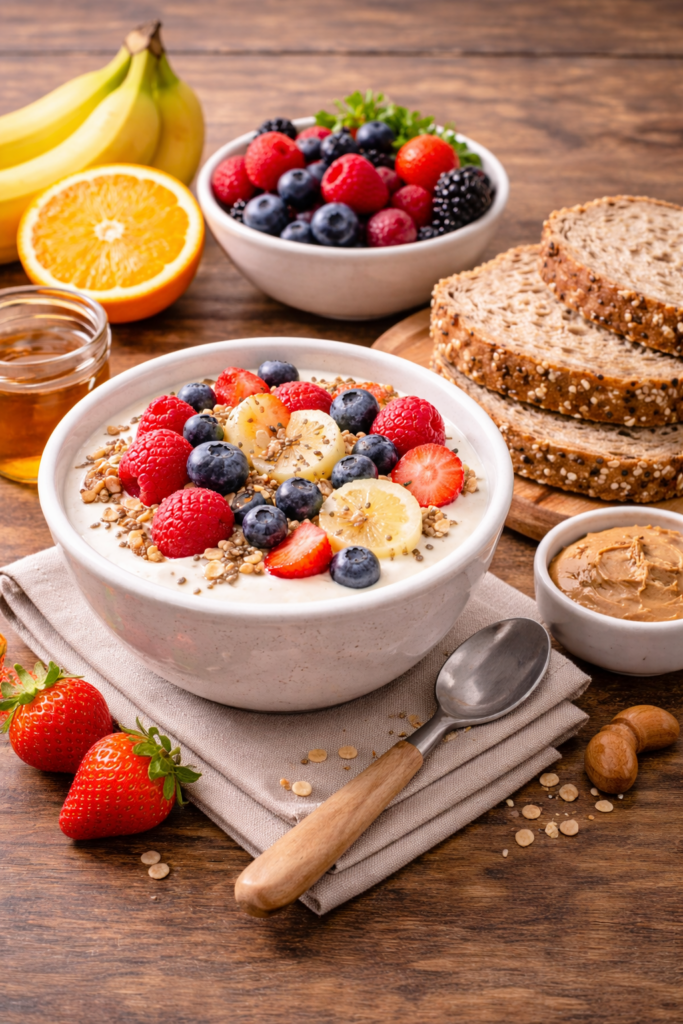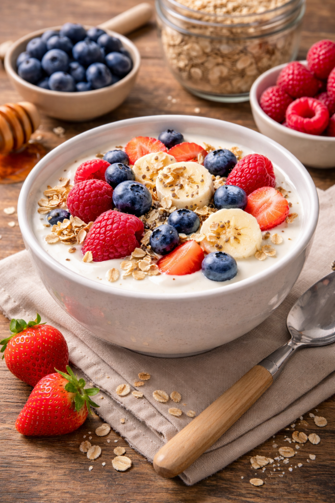 - Yogur natural con fruta y avena