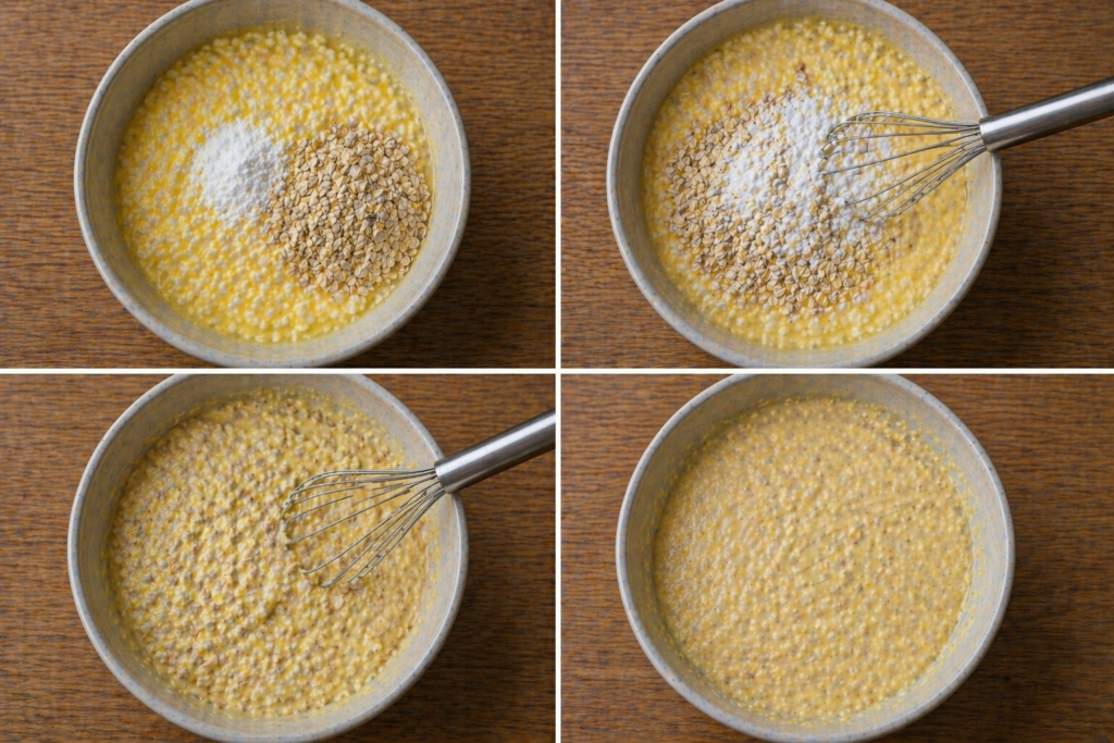 Incorpora la levadura y, si decides usarla, la avena. Mezcla nuevamente hasta integrar todo.