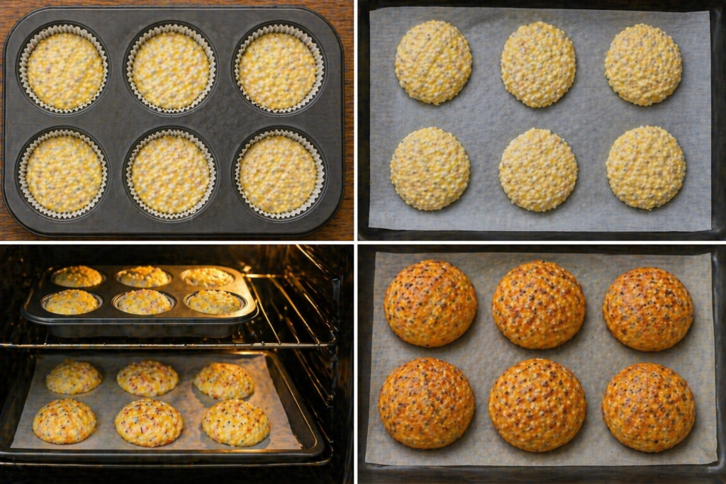Puedes verter la mezcla en moldes individuales o formar pequeños panes sobre papel de horno.4. Horneado
