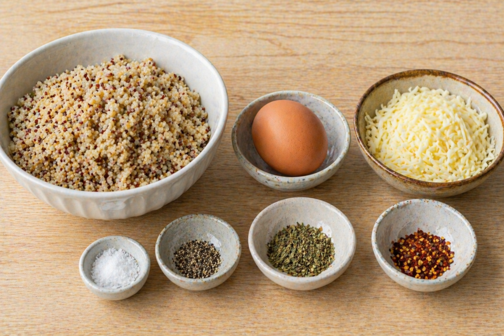1. Mezcla la quinoa cocida con el huevo, el queso y los condimentos.