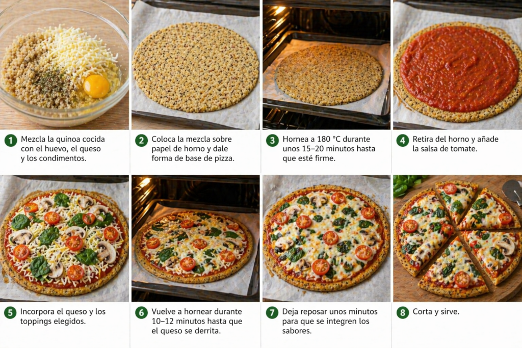 Si estás buscando una alternativa saludable a la pizza tradicional, esta versión con quinoa es una excelente opción. Sin gluten, nutritiva y muy fácil de preparar, es ideal tanto para almuerzos como cenas, especialmente cuando quieres comer bien sin complicarte.